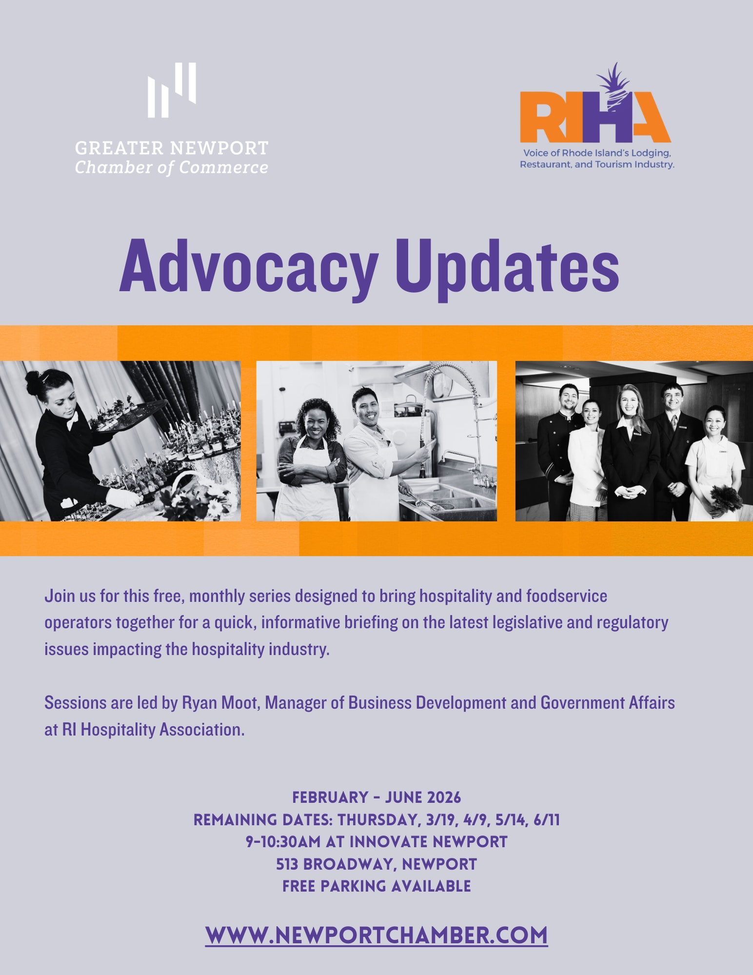 Sessions are led by Ryan Moot, Manager of Business Development and Government Affairs at RI Hospitality Association.